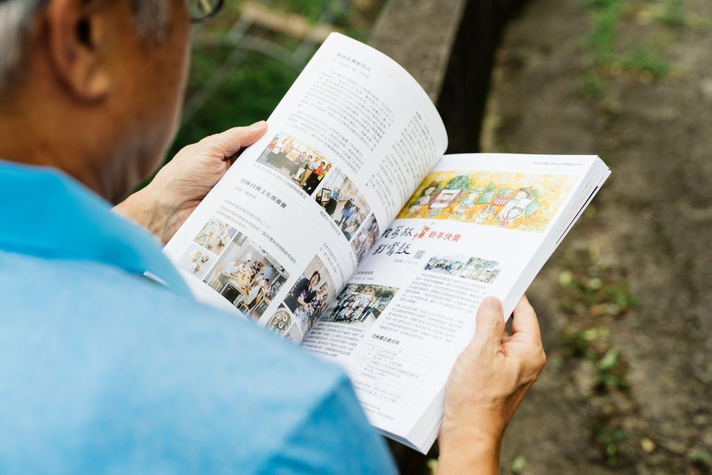 《九芎林打嘴鼓》是由芎林亮起來發展協會編採出版的雙月刊鄉報,到今年五月已經累積發行滿五年共三十期。被鄉親稱為「徐博」的核心編輯徐烈鈞過去在美國生活二十多年,2000年回國後落腳芎林。熱心的徐博不僅多年來在每天晨運途中順手撿拾垃圾,退休後更數次號召環保志工團、積極投入社區營造,組織芎林亮起來發展協會,重整再造了不少鄉內地景。此外,為了有系統地留存芎林文史,協會於2017年發行《九芎林打嘴鼓》,介紹在地歷史、社區活動、特色產業和人物故事。
