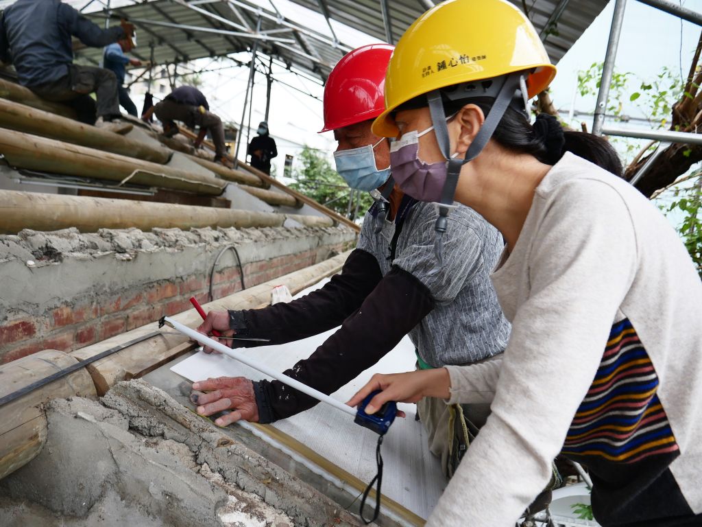 傅明光司阜在2016年獲得了文化部頒發的人間國寶,算是為他一身本領定錨。我也鼓勵他開設傳習班,希望將技藝傳承下去。他一開始不太願意,一直到去年首肯。去年底在文化部及新竹縣政府文化局的協助下在新瓦屋開辦了瓦作傳習課,他收了十一位徒弟,現在常會主動跟我說,「這些徒弟很認真、肯學、很好。」這讓我更有信心,也相信傅明光能將一身的文化手藝留給未來的台灣。