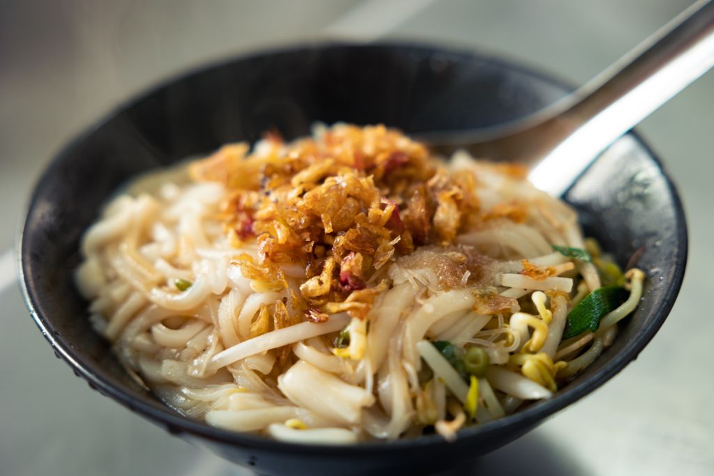 循線來到萬巒,派出所前有一「萬巒古早味粄條」,為百年老店。外觀看起來小小窄窄的,不起眼,裡頭空間縱深卻長,別有洞天。炸好的油蔥酥放在麵攤邊的小陶罐中,隨時取用。如果不夠,現場隨即再炸一批。目睹炸油蔥酥的精彩過程,新鮮紅蔥頭在熱油裡劈哩啪拉響,那迷人香氣飄散過來,意志不堅者恐會立馬舉手跟老闆娘說加一。油蔥酥浸泡於湯中並非完美狀態,強烈建議讀者來萬巒玩,粄條要吃「乾的」啊!